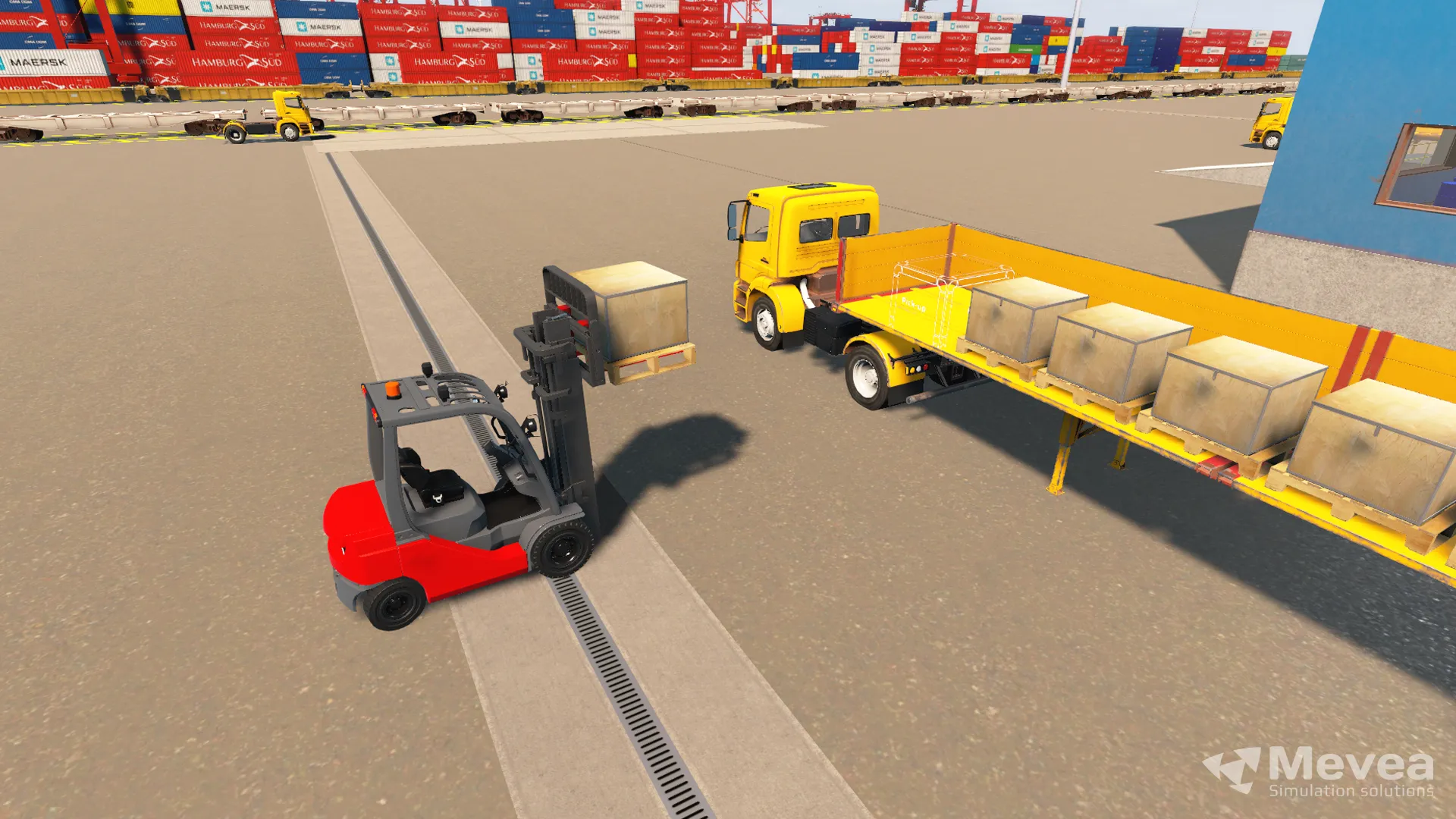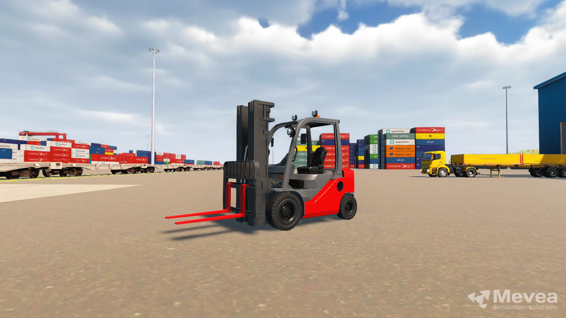 Train your operators to master Forklift (a.k.a. Port Forklift and Yard Forklift) operations safely and efficiently with the Mevea Forklift Training Simulator